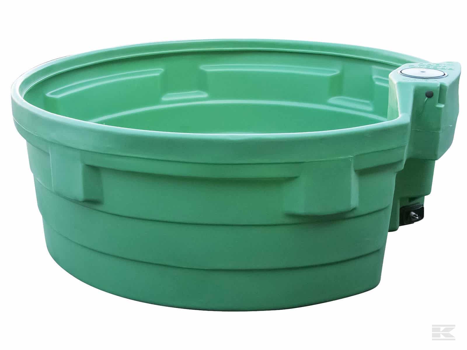 Rundt markvandingstrug i slagfast UV-bestandig Polyethylen. Truget har skvulpekant og let tilgængeligt rensehul.